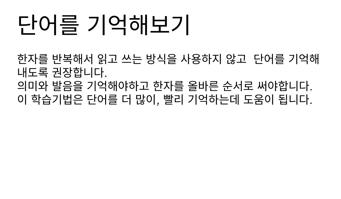 중국어 어휘와 한자 학습을 위한 다양한 여러 방법을 검토한 결과, 보편적으로 알려진 두 가지 학습기법을 사용하고 있습니다