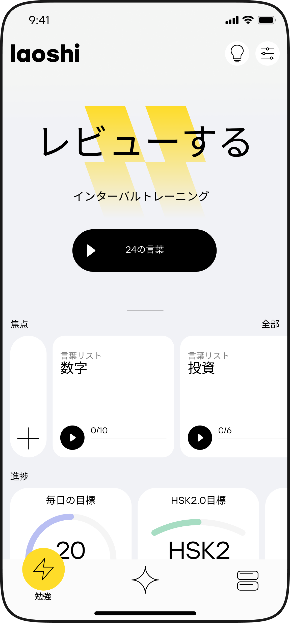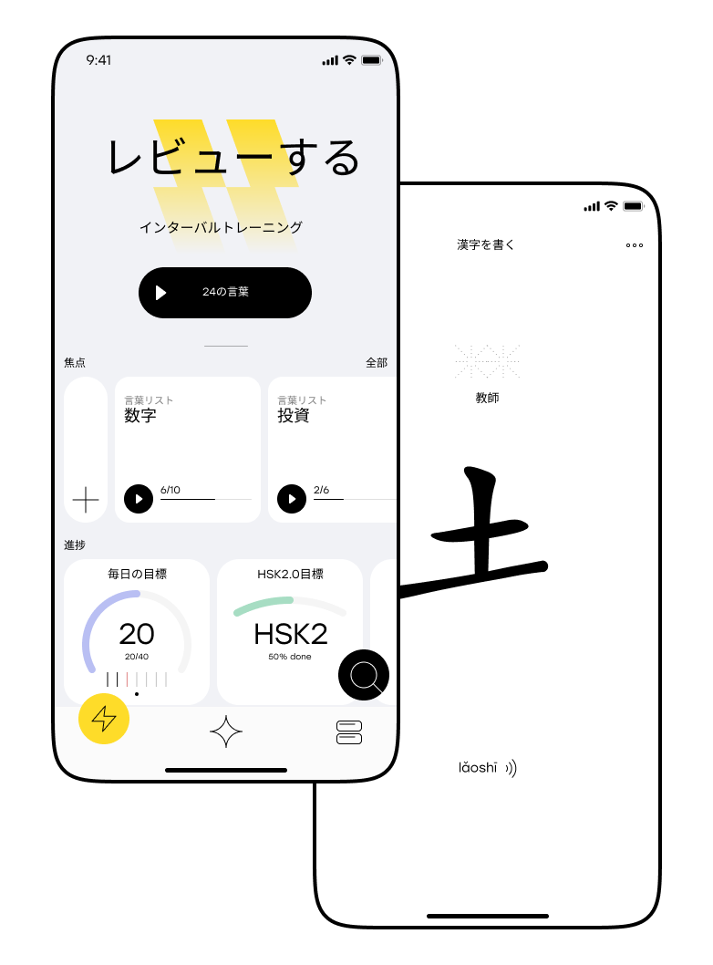 時間間隔を増やしながら情報を反復すると、長期記憶に残ります。 Laoshi は、復習する時間を通知します。